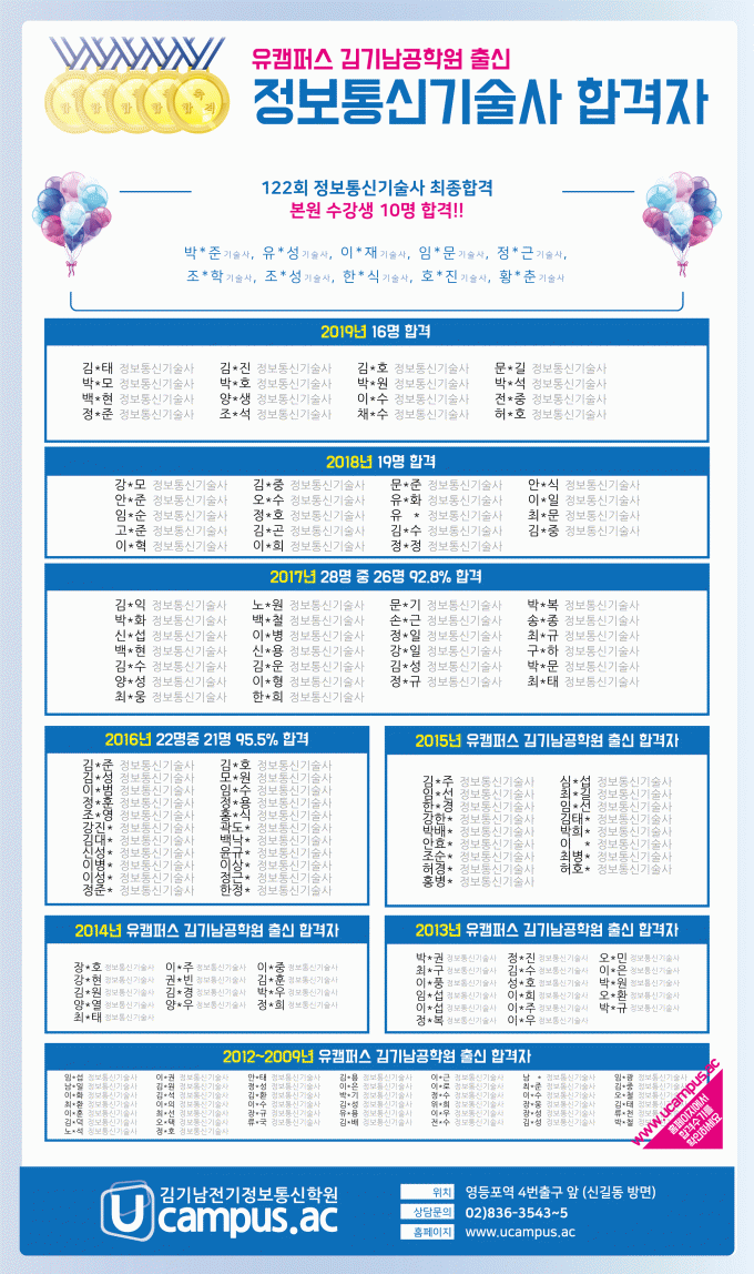 유캠퍼스 김기남공학원 방송사, 공기업, 공무원 최근년도 합격자!