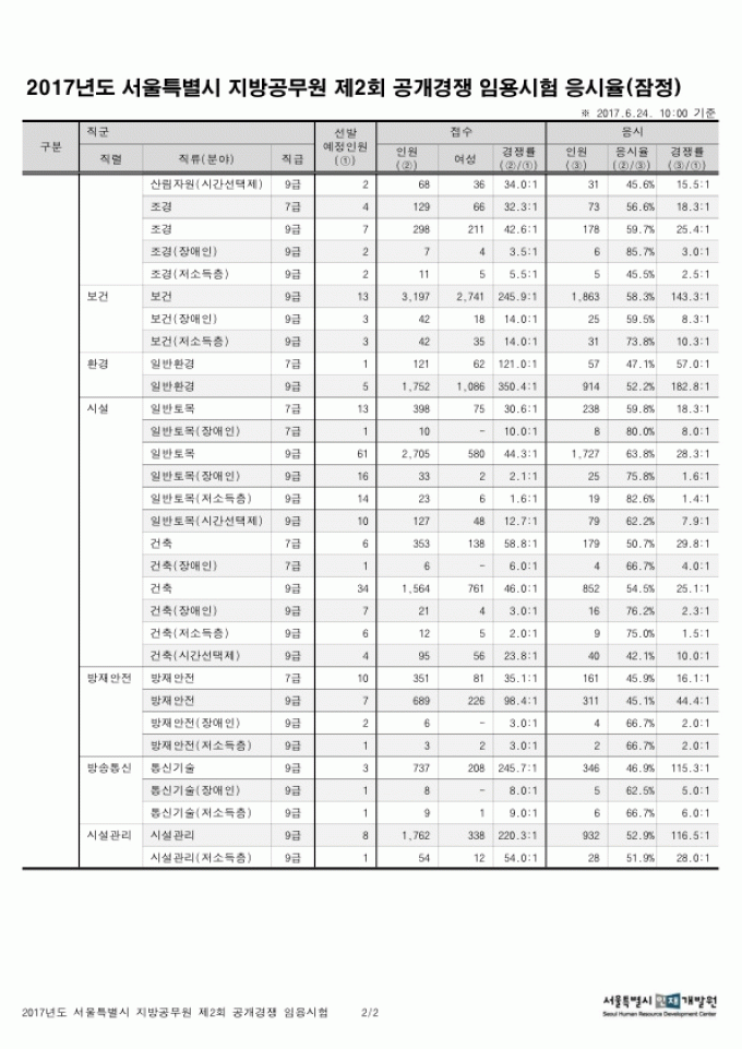 안녕하세요. 기술직공무원전문학원 김기남공학원입니다. 지난주 토요일에 시행됐던 서울시 응시율입니다. 생각보다 결시가....-.-