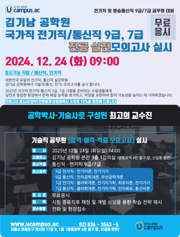 ㅇ 김기남공학원 홈페이지 www.ucampus.ac