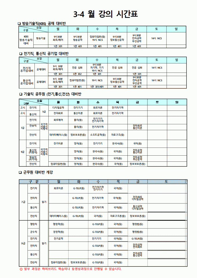 2023년 하반기 정보통신기술사(멘토반) 시간표!!!