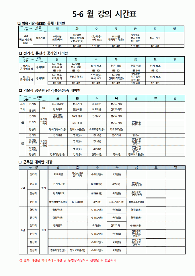 2023년 하반기 정보통신기술사(정규반, 파이널반) 시간표!!