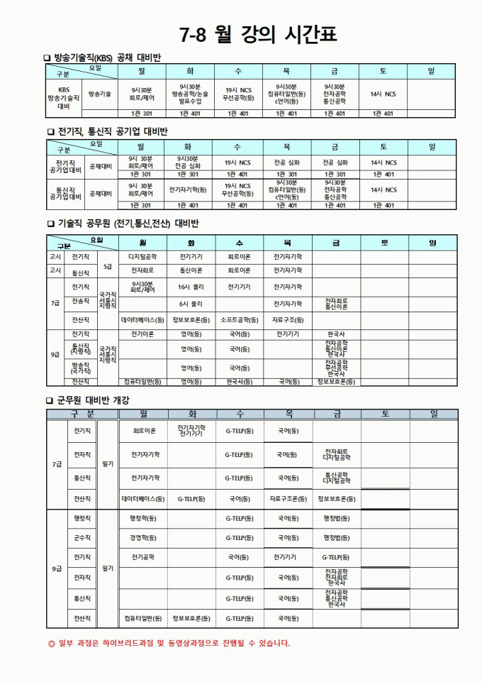 2025년 12월 방송기술직 시간표