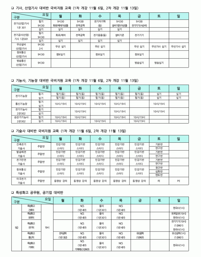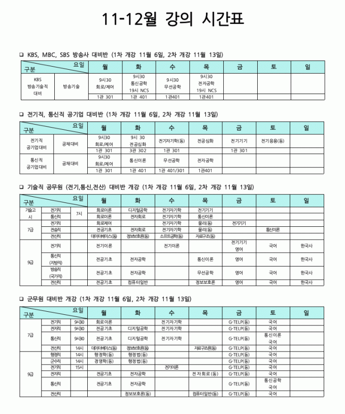 2023년 하반기 정보통신기술사(정규반, 파이널반) 시간표!!