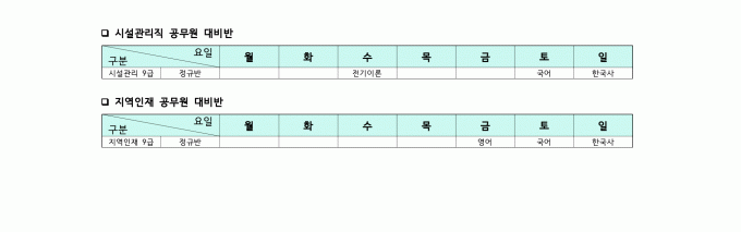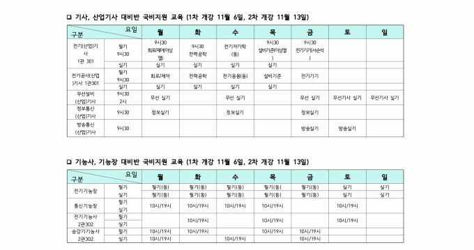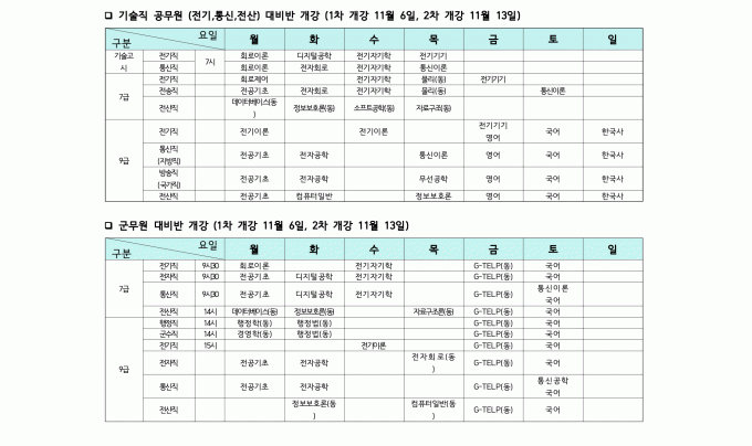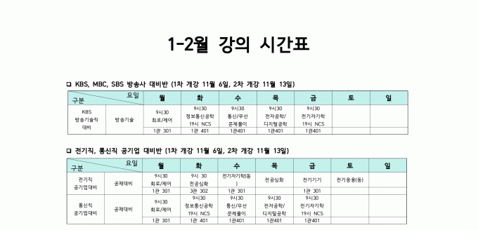 2025년 12월 방송기술직 시간표