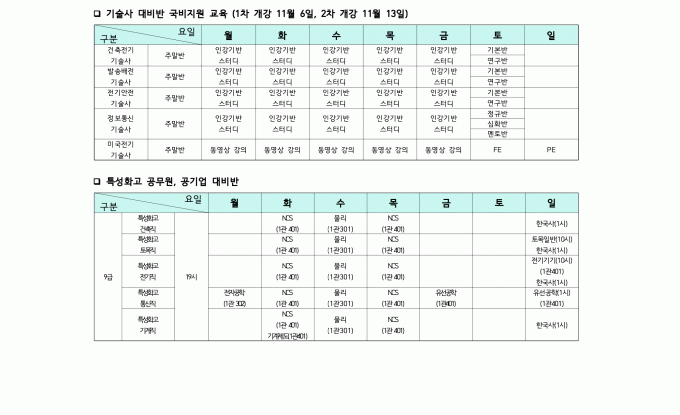 2025년 12월 전기직, 통신직 공기업 시간표