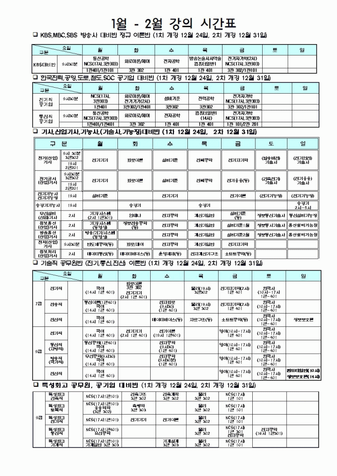 2025년 12월 방송기술직 시간표