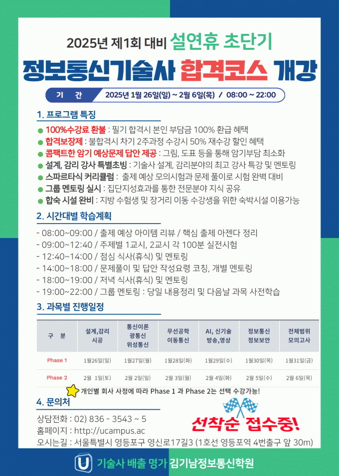 2025년 1회 정보통신기술사 합격코스 초단기반(2주) 개강!!