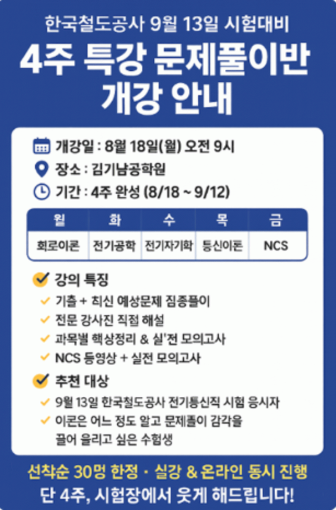 2025년 코레일 하반기 채용대비 아래와 같이 개강합니다.