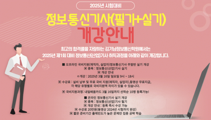 | 2025년 3월16일 개강 국비지원 정보통신(산업)기사 필기+실기 | |||