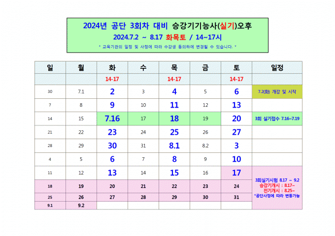 2024년 7월 20일 국비지원 정보통신(산업)기사 필답형 실기 개강 안내