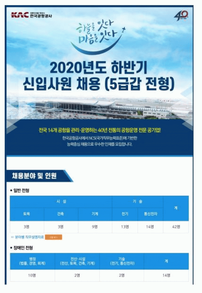 통신직 공기업 [채용공고] 2020년 하반기 한국공항공사 채용공고