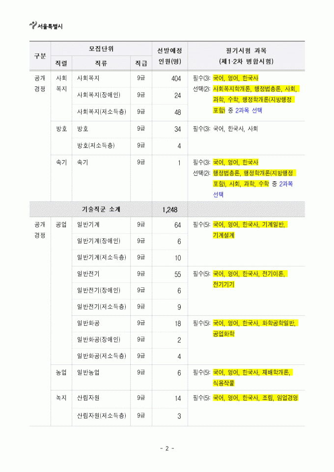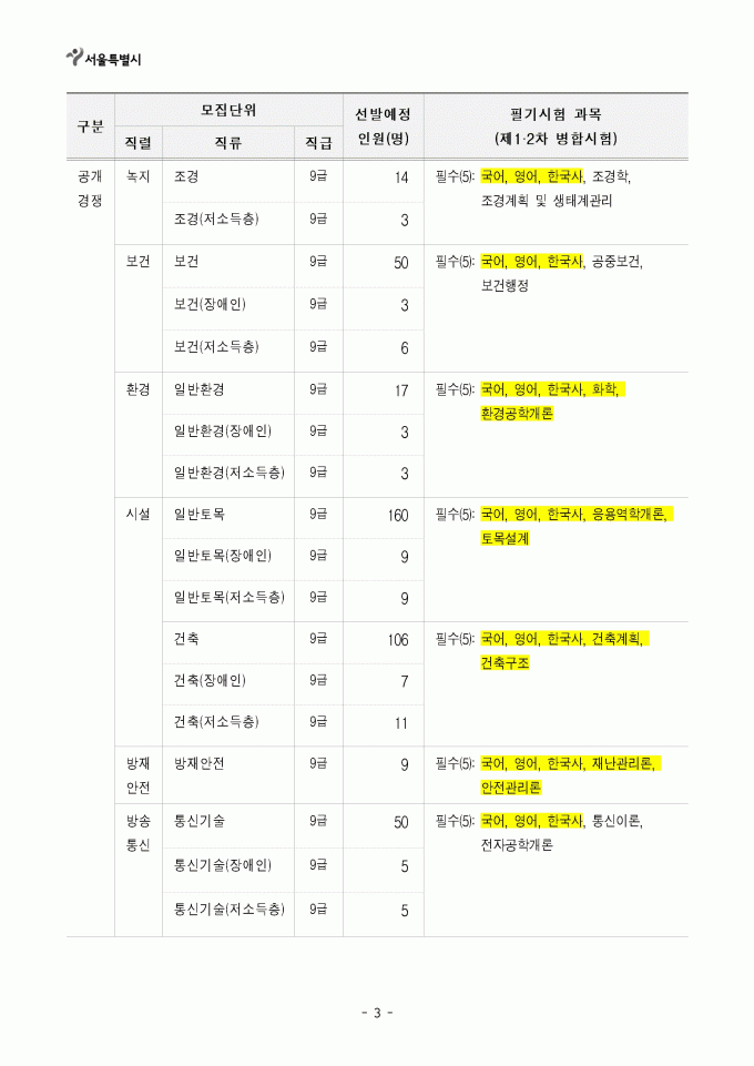 76 공무원ㆍ군무원 [채용공고] 2021년 제1회 서울특별시 지방공무원 임용시험 시행계… 관리자 2021-02-09