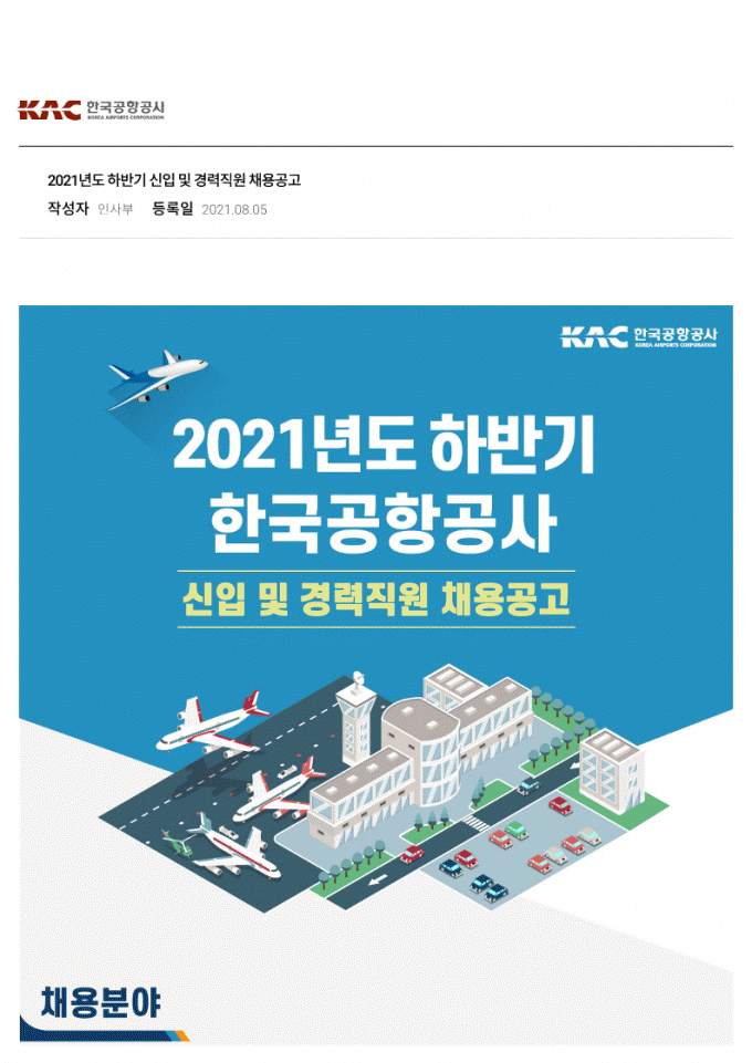 79 통신직 공기업 [채용공고] 2021년 하반기 한국공항공사 채용공고 관리자 2021-08-11