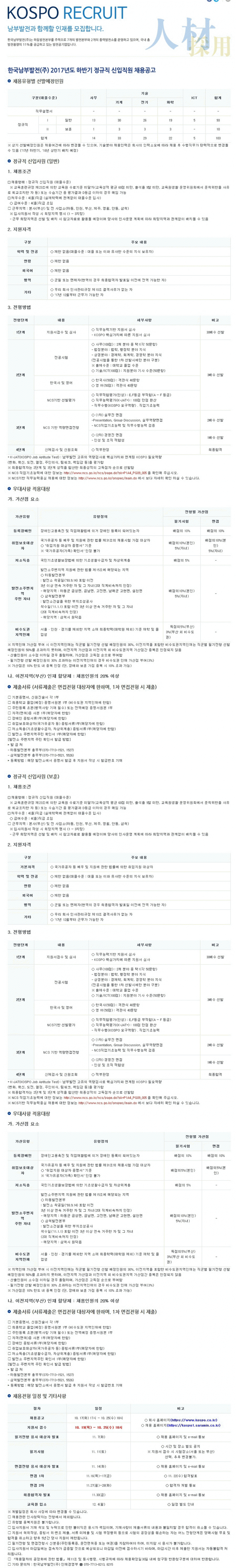 2017 남부발전 하반기 채용공고