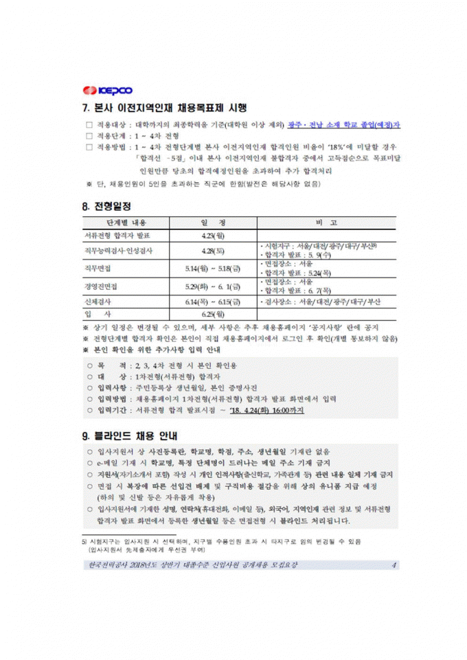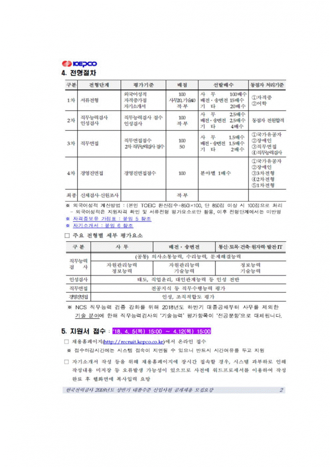 공기업ㆍ방송사 [채용공고] 2018년 한국전력공사 채용공고