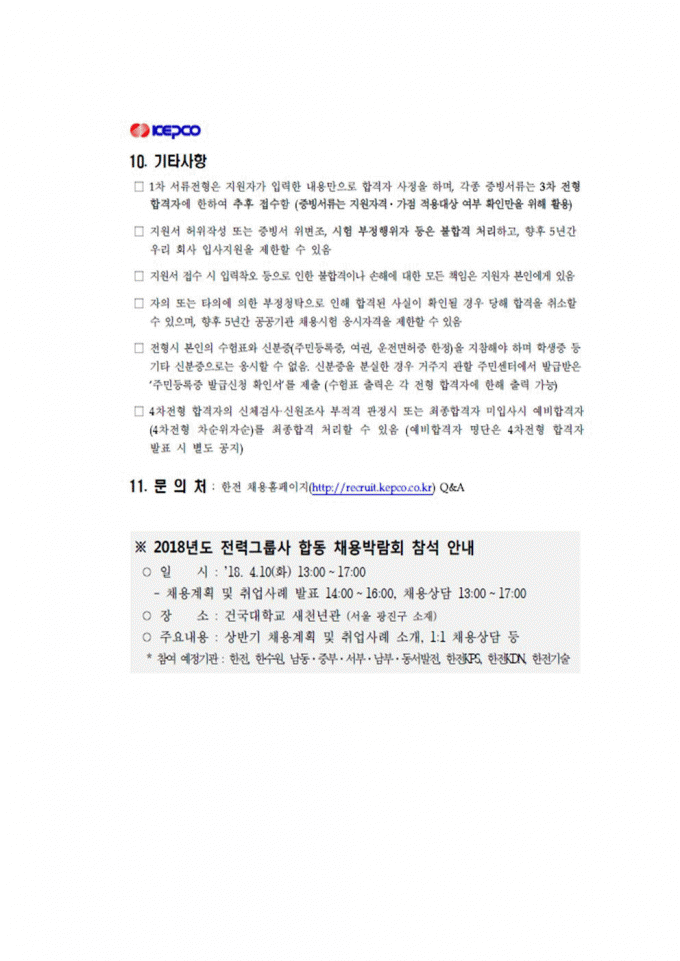 65 공기업ㆍ방송사 [채용공고] 2018년 한국전력공사 채용공고 관리자 2018-03-30