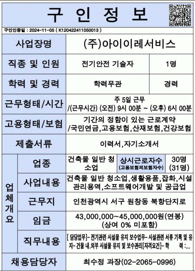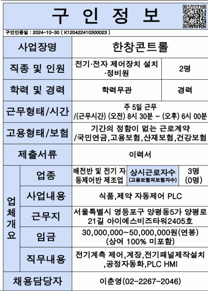[채용공고] 2024년 하반기 전기관련 구인업체 !!