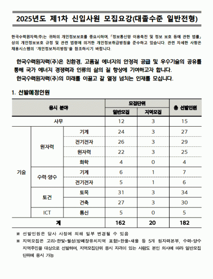 [채용공고] 2025년 한수원 채용 공고